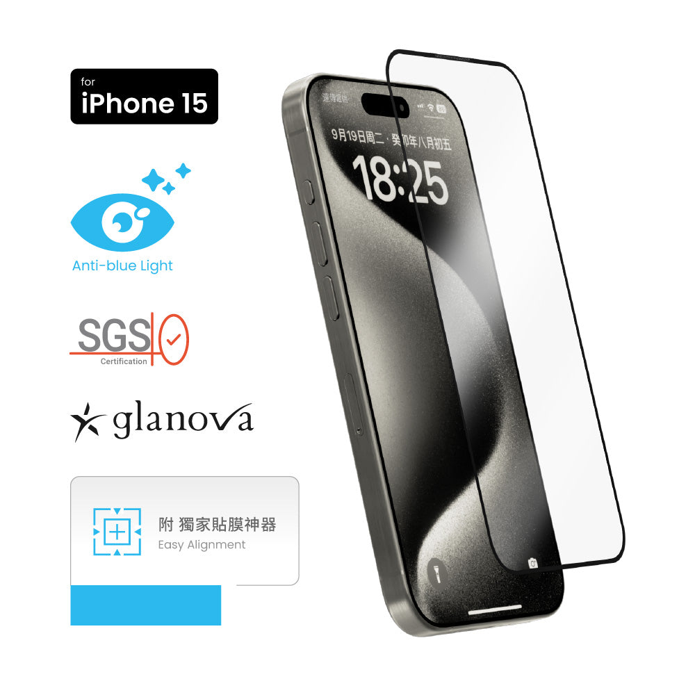 MOZTECH® iPhone 15 系列 9H+無色抗藍光鋼化保護貼